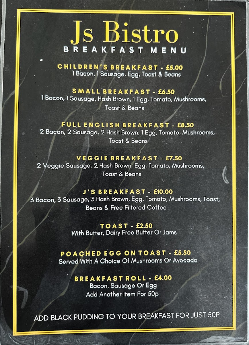 Welcome to J’s Cafe and Bistro, a hidden gem located at 59 Jenner Blvd, Bristol. This charming cafe offers a delightful menu that caters to all tastes from breakfast through to lunch. Renowned for its friendly service, it’s an ideal spot whether you're seeking a hearty full English breakfast or a refreshing ploughman’s lunch.
